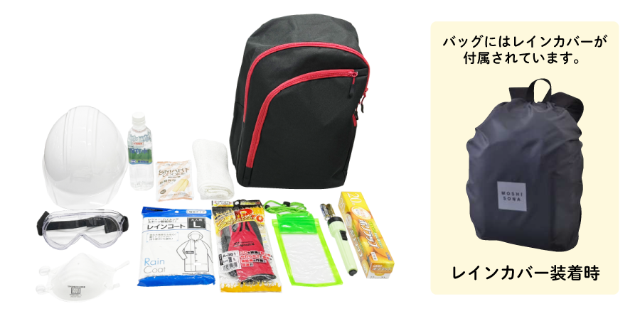 噴火災害時の帰宅支援を想定した、最低限必要な物資を取り揃えております。