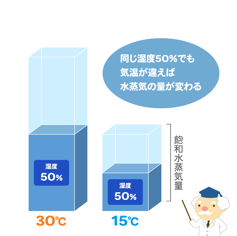 相対湿度は空気中に含まれる【水蒸気の割合】を表しています。