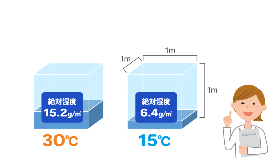 絶対湿度は空気中に含まれる【水蒸気の自体の量】を表しています。