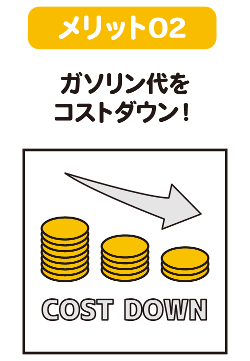 また、ご利用状況によっては、ガソリン代が削減できない場合がございますのでご了承ください。